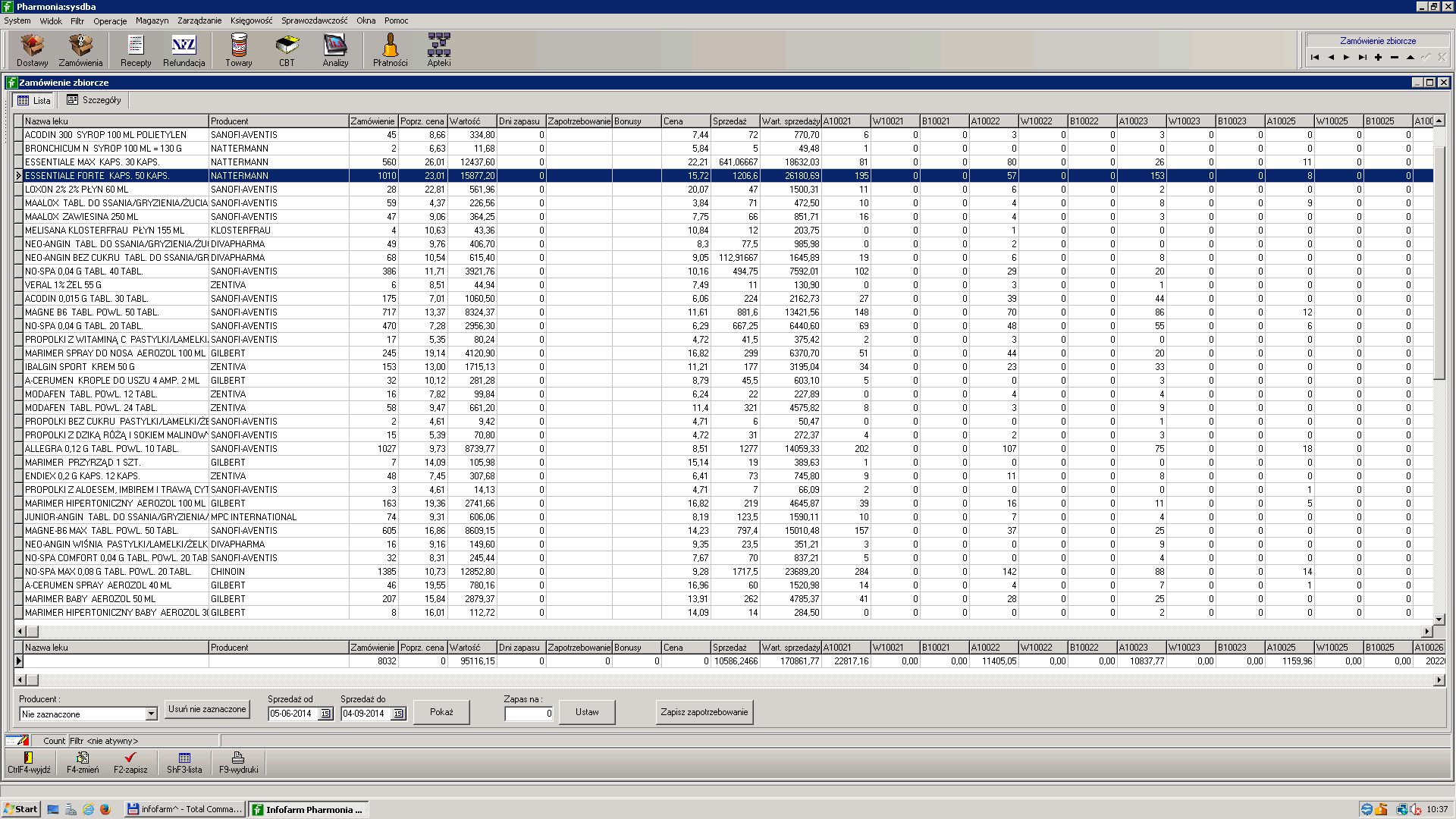 Prognoza Zamówienie zbiorcze Pozycja zamówienia Kontrola dostaw XLS